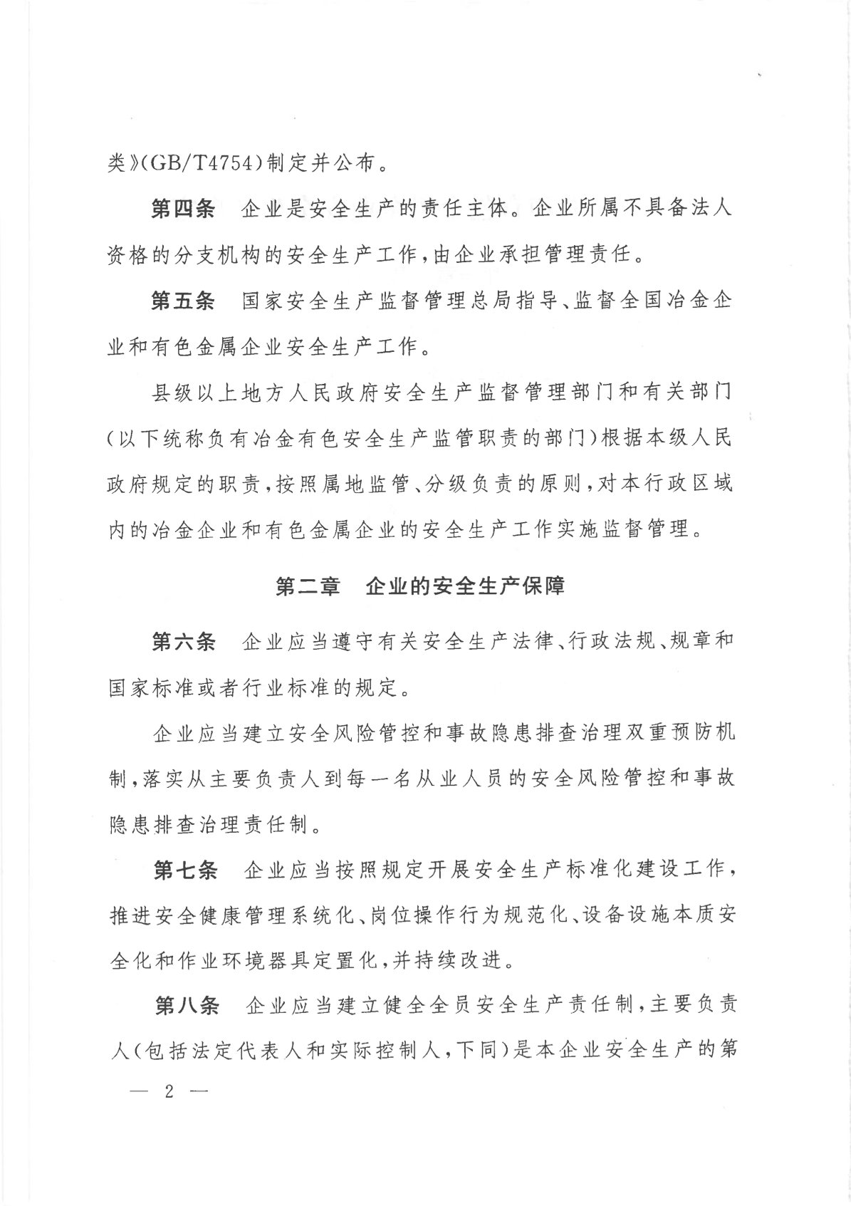 冶金企業(yè)和有色金屬企業(yè)安全生產(chǎn)規(guī)定